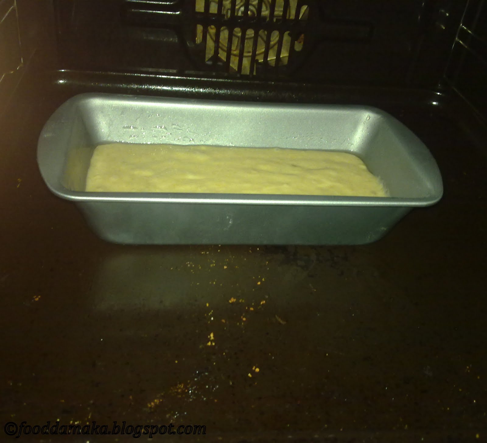 Placed in greased loaf tin and placed in Preheated oven at 180ºC fan